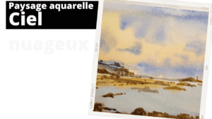 Cette aquarelle ciel nuageux est un croquis aquarelle d’un paysage breton de